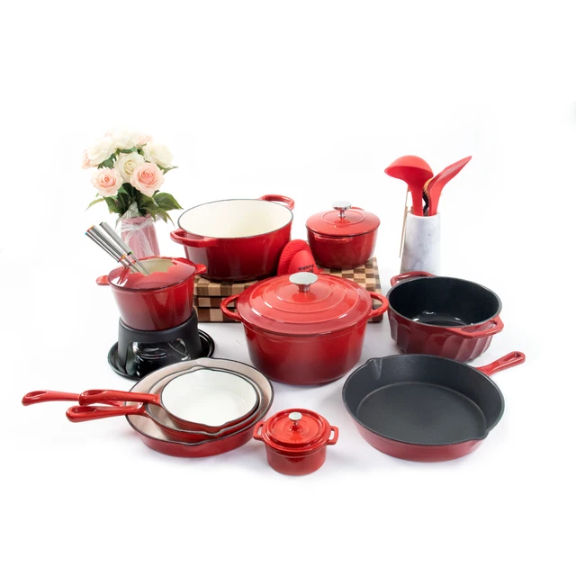 Mcooker Low Moq Custom Red Enamel Iron Cast Non Stick Pan Cookware Set Cast Iron Pots Set Cookware Casserole